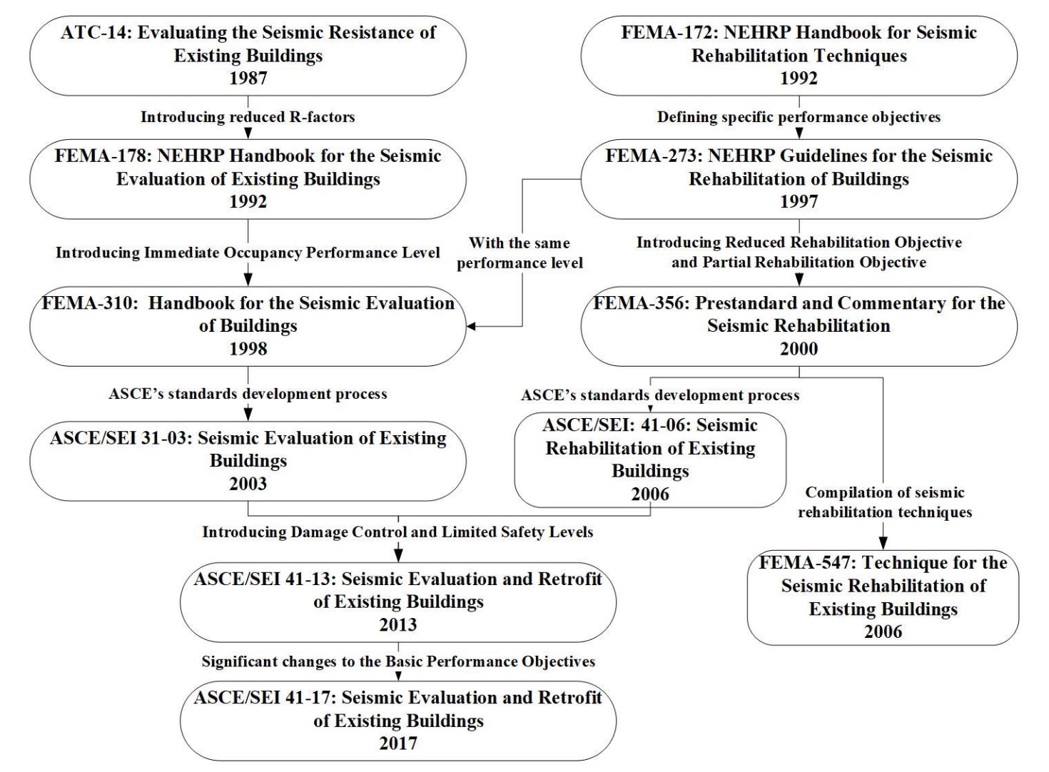 圖1 美國抗震鑒定與加固相關(guān)研究報告與技術(shù)標準體系