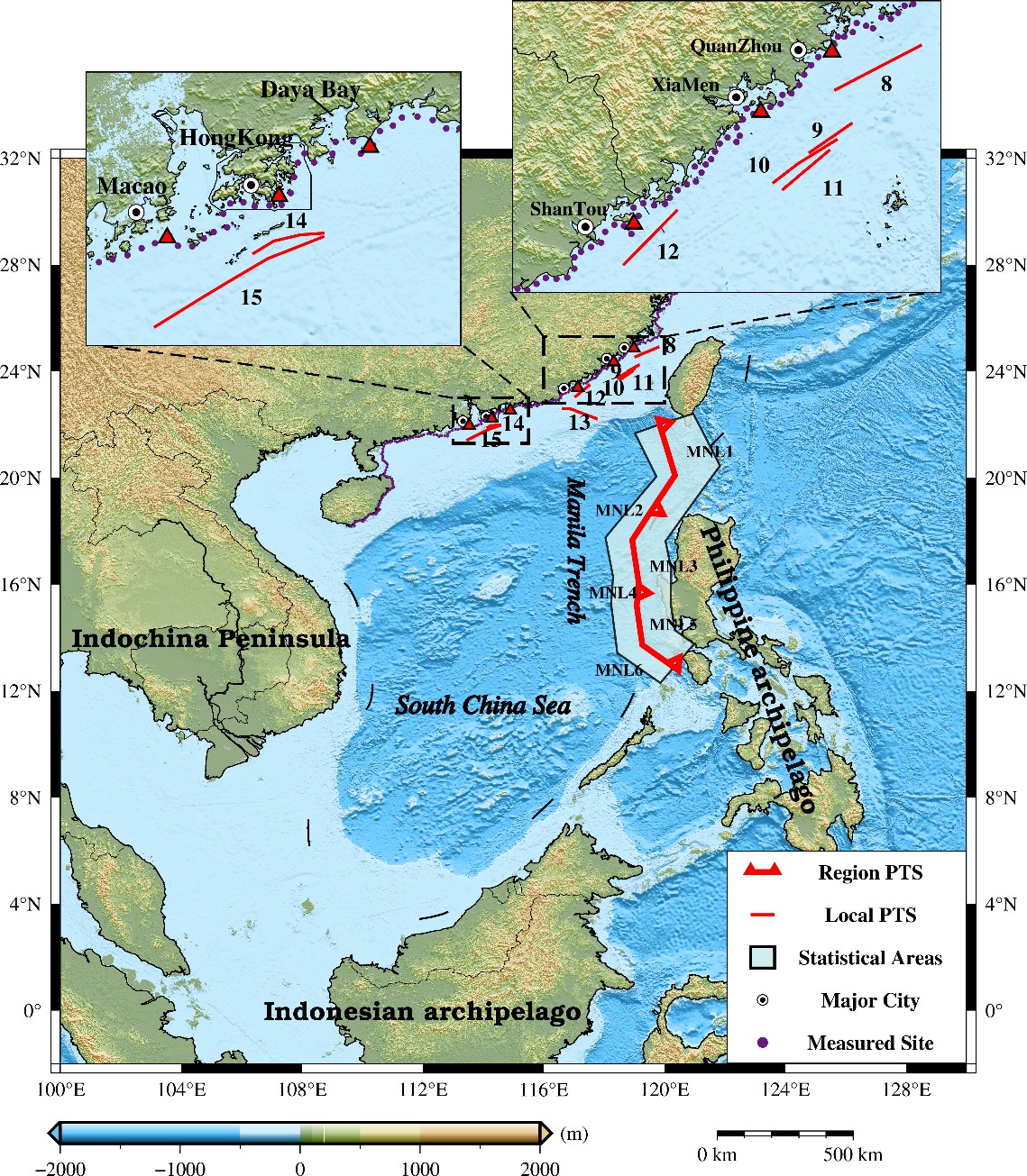 圖1 對中國東南沿海有影響的潛在海嘯源